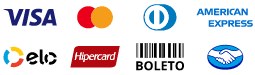 Aceitamos Pix, Boleto, Visa, MasterCard, Elo, Hiper, Amex
